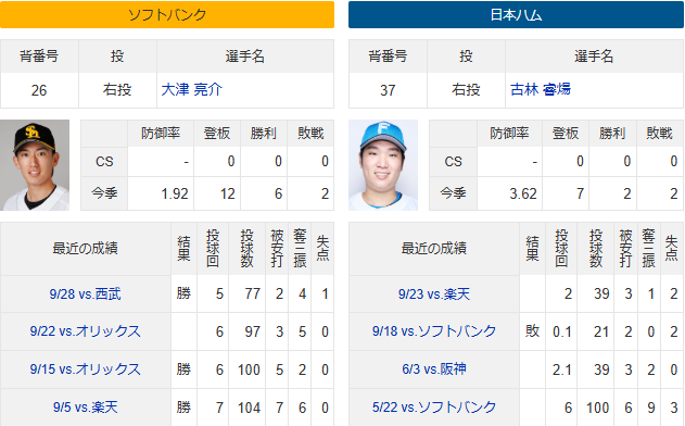 ホークス対ファイターズ 13:00~(みずほPayPay) CSファイナルステージ