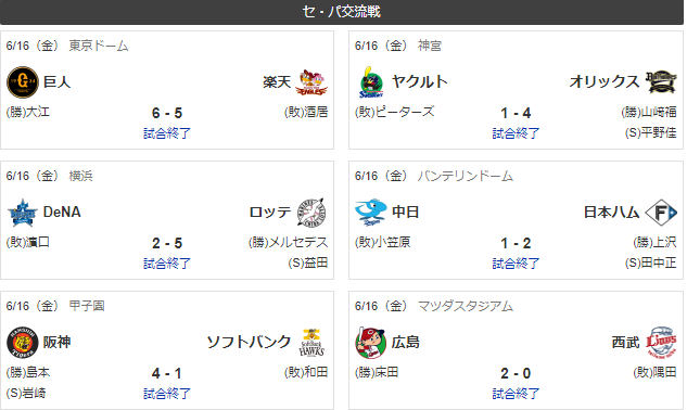 【6/16セ順位スレ】神====De=-巨=-広=/=======中ヤ