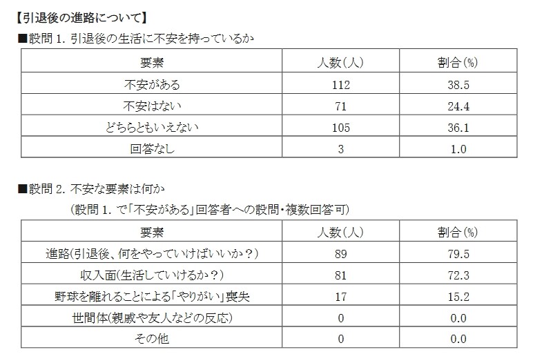 若手プロ野球選手(平均22.6歳、年俸843万円)にアンケート。「引退後の生活に不安がありますか?」