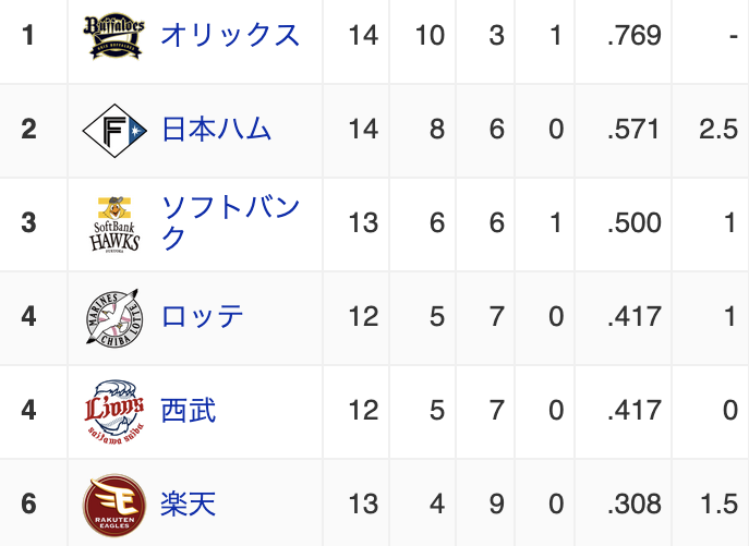 2位日本ハムと3位ソフトバンク、1ゲーム差