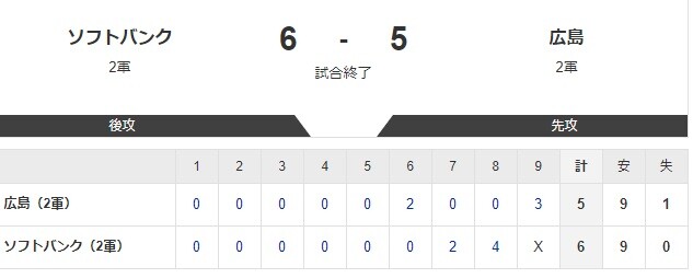 【6-5】ホークス2軍勝利 東浜3回3安打無失点5奪三振 柳町の勝ち越しタイムリー