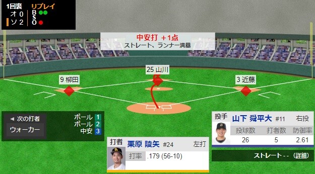 山川の中前適時打で先制!!栗原も続き追加点!!