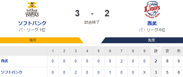 【3-2】ホークス、白のキセキ2024東京で勝利!!有原7回9奪三振2失点の好投 山川の復活ホームランで追加点【4連勝】