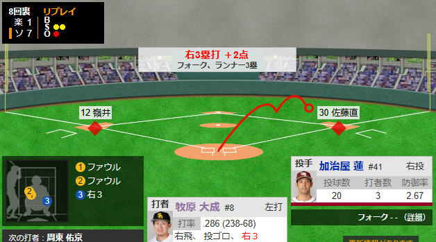 牧原大成、また三塁打wwwwww