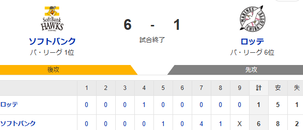 【6-1】ホークス勝利!!松本晴7回1失点の好投 山川が勝ち越し満塁ホームラン 本拠地13連勝で記録更新