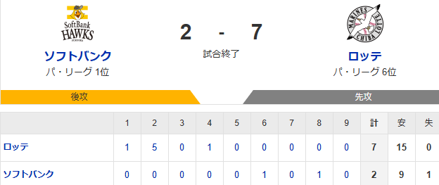 【2-7】ホークス敗戦 山川と野村勇がソロホームラン 木村光が2イニング無失点