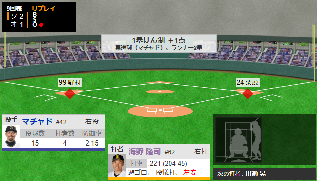 けん制悪送球でホークス勝ち越し
