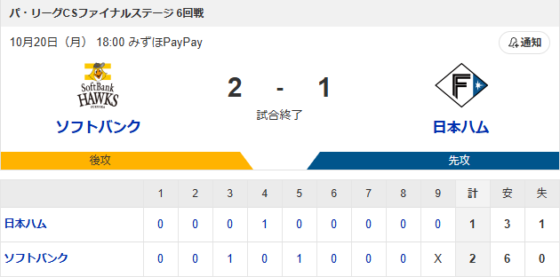 • 【1-7】ホークス三連敗 明日日本シリーズ進出をかけた最終決戦へ