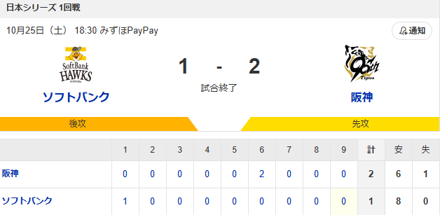 【1-2】日本シリーズ第1戦 ホークス惜しくも敗戦