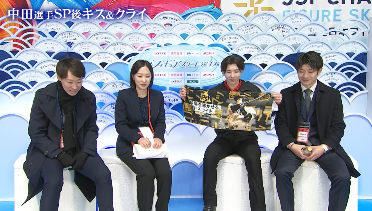 フィギュアスケート中田璃士、点数待ちで山川タオルを掲げる「どすこいを決めたい」