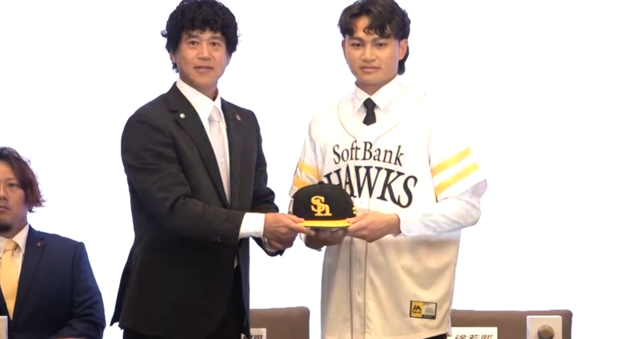 徐若熙 入団会見(台湾) 趣味は釣りとキャンプで城島CBOと意気投合