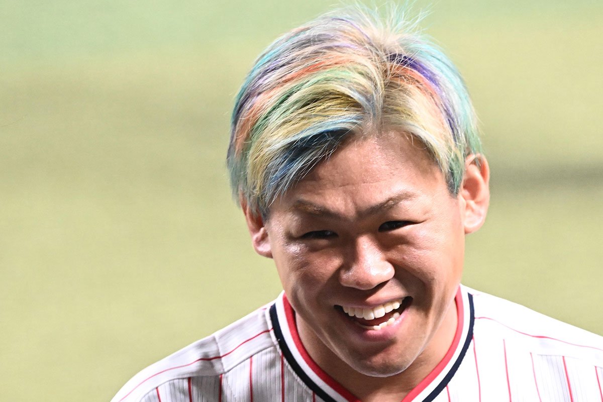 その田口は、FA取得日当日のオールスター第1戦に、12球団のイメージカラーに染め上げられたレインボーヘアで登場したことでも話題となった。その配色には何か意味があるのか。移籍先の球団を示唆しているのではないかとの臆測も飛び交っているため「黄色の割合が多いのでは?」「カープの赤がないのはナゼ?」と、当の本人を直撃してみると…。