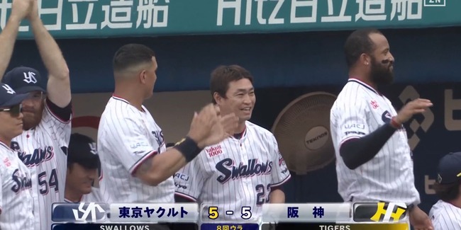 ヤクルト長岡、満塁走者一掃同点タイムリーツーベース!!!!