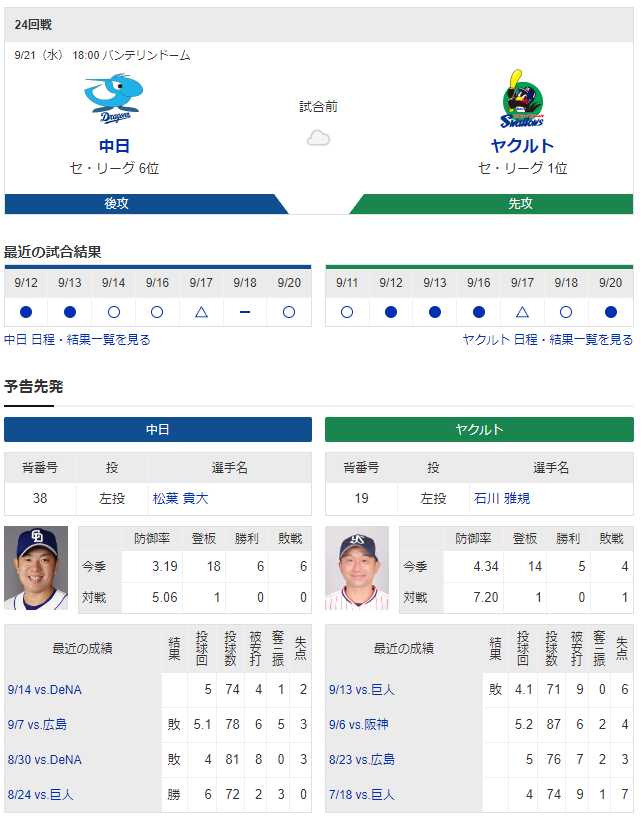 【ドラゴンズ実況】9/21 中日vsヤクルト(バンテリンドーム)18:00開始 先発:松葉貴大 https://baseball.yahoo.co.jp/npb/game/2021011385/top 続きを読む