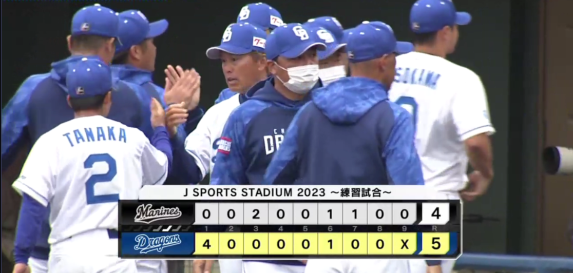 【試合結果】中日 5-4 ロッテ 対外試合3連勝!初回細川タイムリー、鵜飼の一発で4点先制!逃げ切り勝利