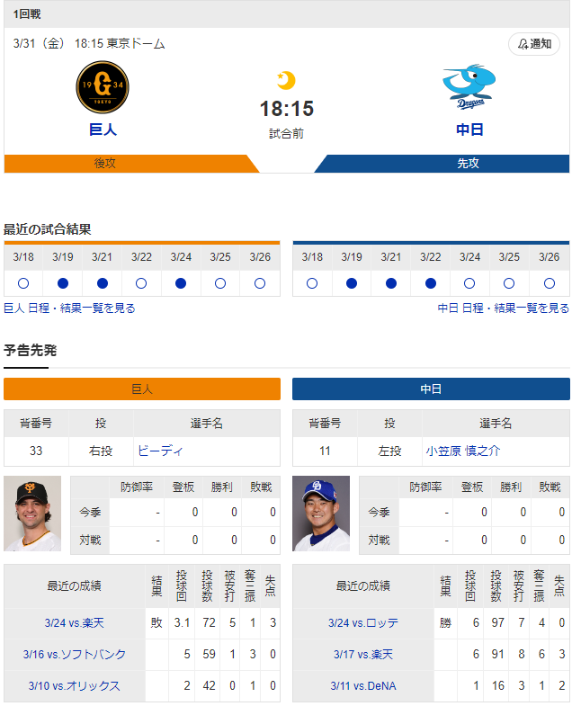 【ドラゴンズ実況】 3/31 開幕戦!中日vs巨人(東京ドーム)18:15開始 先発:小笠原 【中継:日テレ系 DAZN他】 https://baseball.yahoo.co.jp/npb/game/2021012665/top 続きを読む