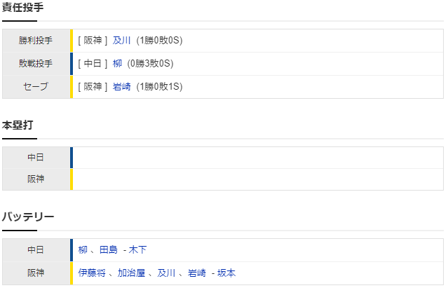 【試合結果】 5/4 中日 2-3 阪神 逆転負け 好投柳8回に捕まり痛恨の連敗