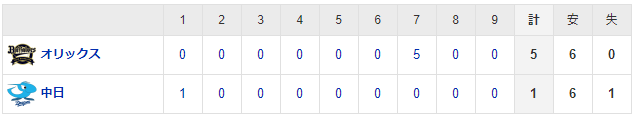 【試合結果】 6/3 中日 1-5 オリックス 連勝ストップ 1点リード守れず7回逆転許す