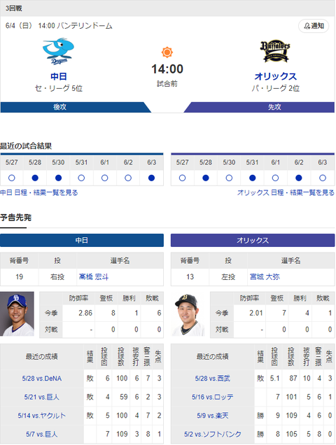【ドラゴンズ実況】 6/4 中日vsオリックス(バンテリンドーム)14:00開始 先発:高橋宏【中継:CBC Jスポ2 DAZN他】 https://baseball.yahoo.co.jp/npb/game/2021012985/top 続きを読む