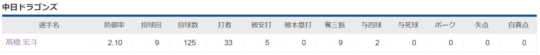 【朗報】中日・髙橋宏斗がプロ初完投初完封!打線も爆発7得点で快勝