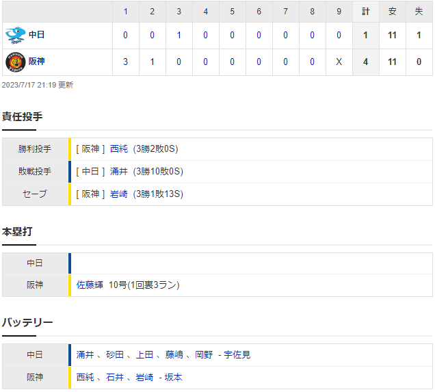 【試合結果】 7/17 中日 1-4 阪神 涌井3回途中4失点で降板10敗目、、打線も1点止まり 前半戦終えて借金14ターン https://baseball.yahoo.co.jp/npb/game/2021013176/top 続きを読む