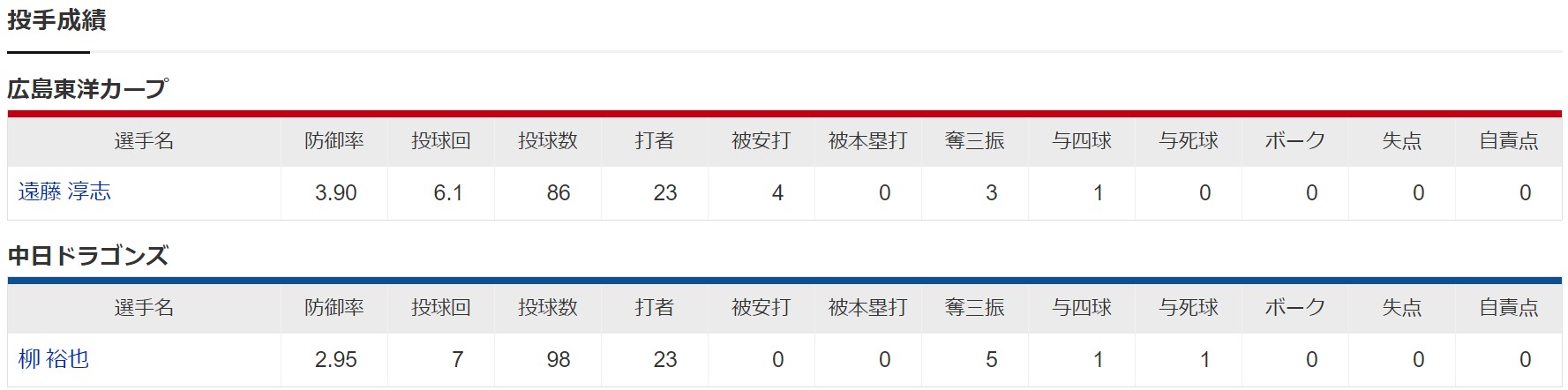 柳裕也ノーヒットノーランまであと6人と1点wwwwww