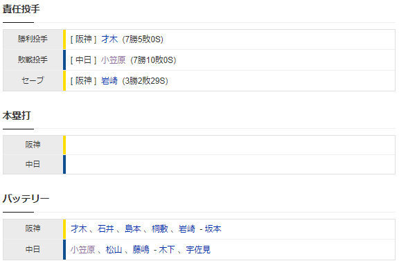【試合結果】 9/6 中日 0-1 阪神 小笠原7回1失点も10敗目・・1点が遠く完封負け https://baseball.yahoo.co.jp/npb/game/2021013409/top 続きを読む