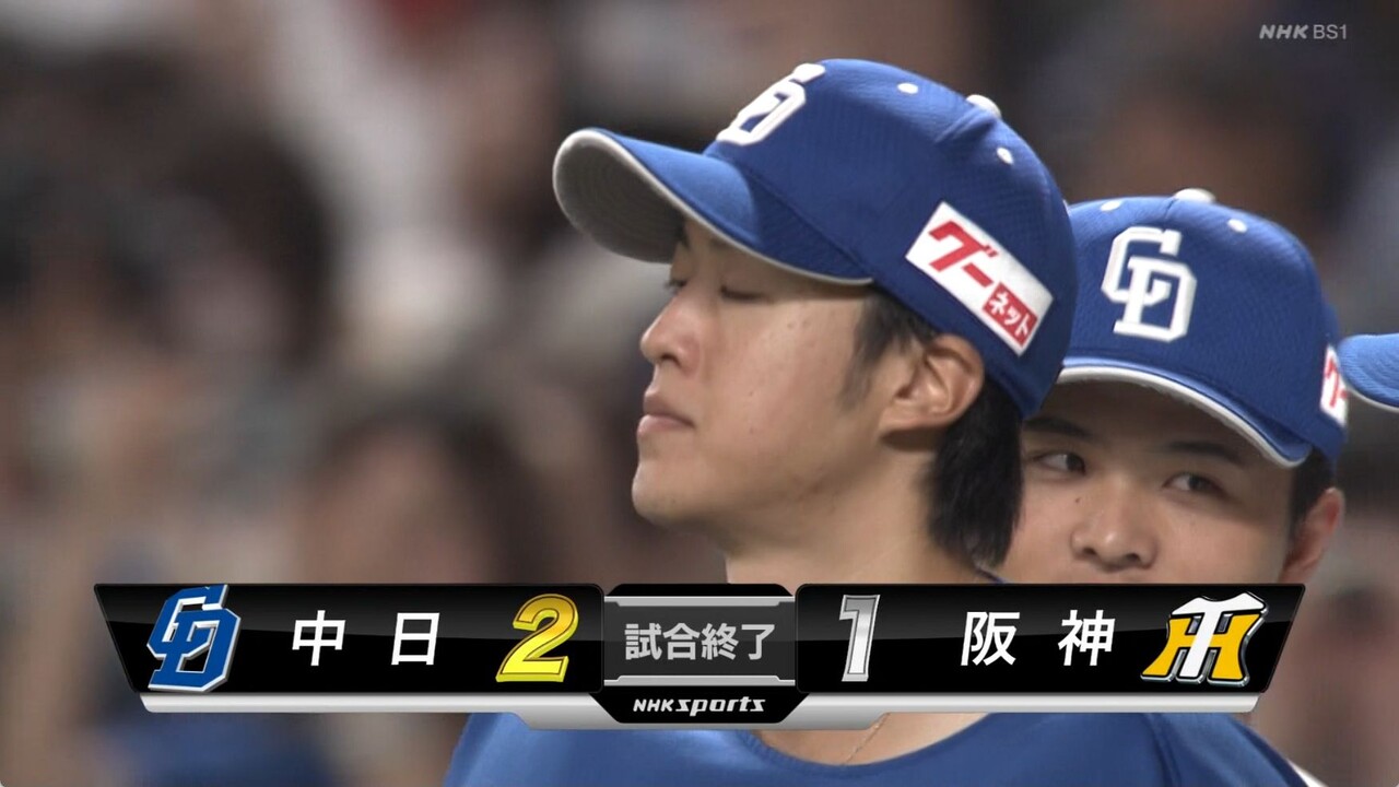 6位・中日は引き分けを挟み3連勝で53勝79敗5分の借金26、5位・ヤクルトと0.5ゲーム差に縮めた。先発・梅野が8回を1失点に抑え1177日ぶりの勝利、龍空が決勝の2点タイムリーを放った。