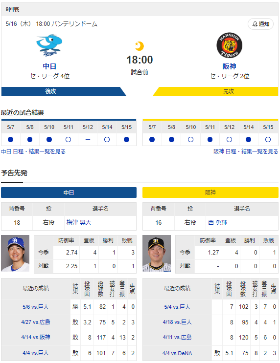 【実況】 5/16 中日vs阪神(バンテリンドーム)18:00~ 先発:梅津【中継:東海TV Jスポ2 DAZN他】 画像引用元:https://baseball.yahoo.co.jp/npb/game/2021020228/top 続きを読む