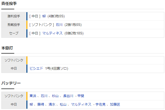 【試合結果】 6/6 中日 3-0 ソフトバンク ビシエド今季1号に加藤タイムリーで連敗脱出!柳4勝目、リリーフ陣も完璧リレー 画像引用元:https://baseball.yahoo.co.jp/npb/game/2021020331/top 続きを読む