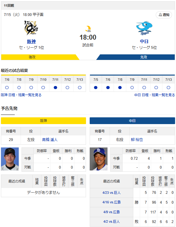 【ドラゴンズ実況】 7/15 中日 vs 阪神(甲子園)18:00~ 先発:柳裕也 【中継:三重 GAORA DAZN他】 引用元:https://baseball.yahoo.co.jp/npb/game/2021029553/top 続きを読む