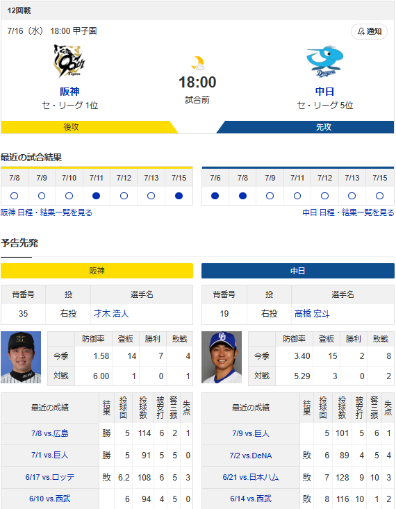 【ドラゴンズ実況】 7/16 中日 vs 阪神(甲子園)18:00~ 先発:高橋宏斗【中継:GAORA DAZN他】 引用元:https://baseball.yahoo.co.jp/npb/game/2021029557/top 続きを読む