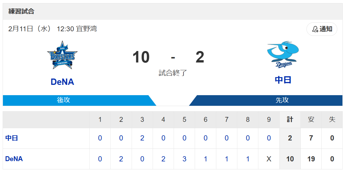 中日が11日、今季初の対外試合となるDeNAとの練習試合(宜野湾)に臨み、2―10と苦い黒星スタートとなった。