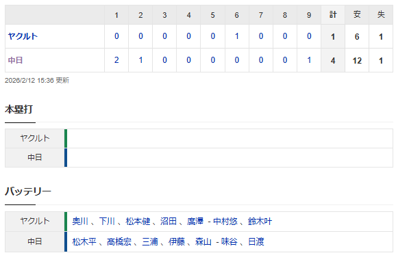 【試合結果】 2/12 中日 4-1 ヤクルト 勝利!松木平3回無失点 石川先制打、福永がマルチヒット 【練習試合】 引用元:https://baseball.yahoo.co.jp/npb/game/2021041159/top 続きを読む