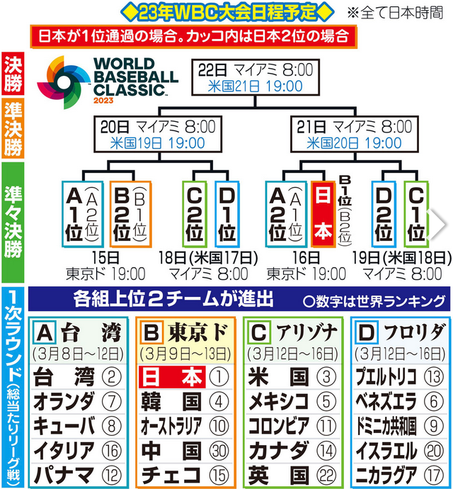 WBCの準々決勝以降の組み合わせが決定!順当に行けば準決勝はアメリカ、決勝はドミニカと対戦か