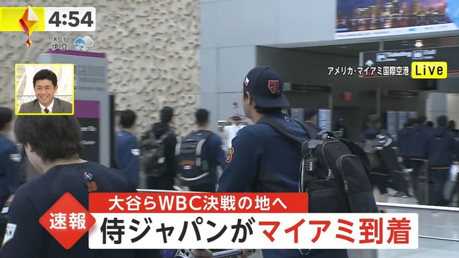 チームは16日の準々決勝・イタリア戦後、東京ドームから羽田空港へと移動し、午前2時50分に日本を出国。大谷翔平投手はインスタグラムに「On to Miami!!(マイアミへ)」と投稿していた。