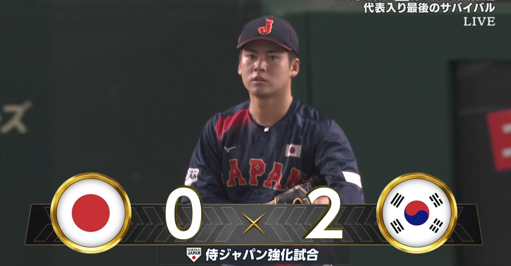 • 侍ジャパン、今日も韓国に先制許す…金丸夢斗3失点