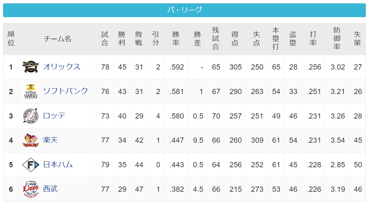 パ・リーグ失策数 檻27 鷹26 鴎28 鷲45 公50 猫46