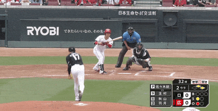 1死から矢野が振り逃げで出塁すると、続く石原に中前打を浴びた。一、二塁となり投手の玉村は送りバント。佐々木の前に打球が転がったが、強烈な一塁送球が高めに浮いてしまった。