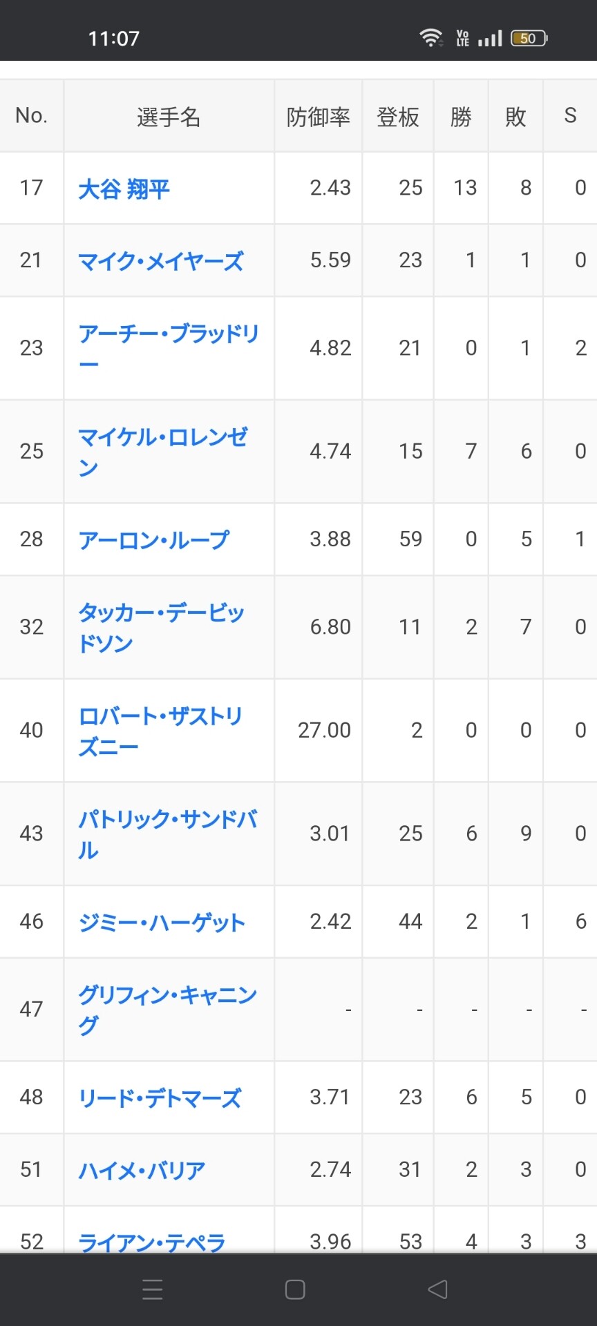 エンゼルス投手陣今シーズンの成績がこちらwwwwww