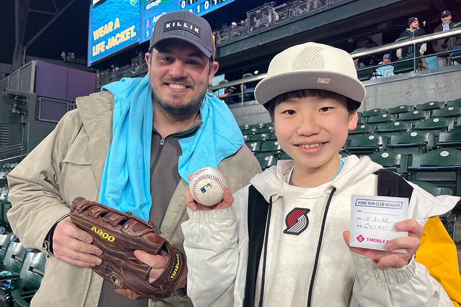 エンゼルスの大谷翔平投手は3日(日本時間4日)、敵地・マリナーズ戦で決勝2号を放った。同点で迎えた5回の第3打席でバックスクリーン右へ勝ち越し2ラン。チームの3連勝に貢献した。大谷の本塁打ボールをキャッチしたのがシアトル在住の36歳のベンジャミン・オバリーさんだ。 HR球をダイレクトキャッチしたオバリーさんは地元のマリナーズファン。ただ、どうしても取りたい理由があったという。ホストファミリーとして、日本から来たバスケ少年を迎え入れていた。 「絶対に取らなきゃいけないと思った。日本から来た子どものためにね。だから私が取って、子どもたちにあげなくちゃと思った。最高の気分だよ。いいキャッチができた。子どものためにどうしても取りたかった」