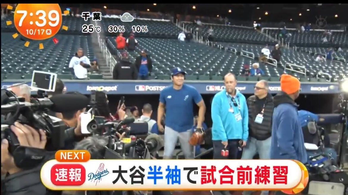 【悲報】フジテレビ「速報、大谷半袖で試合前練習」