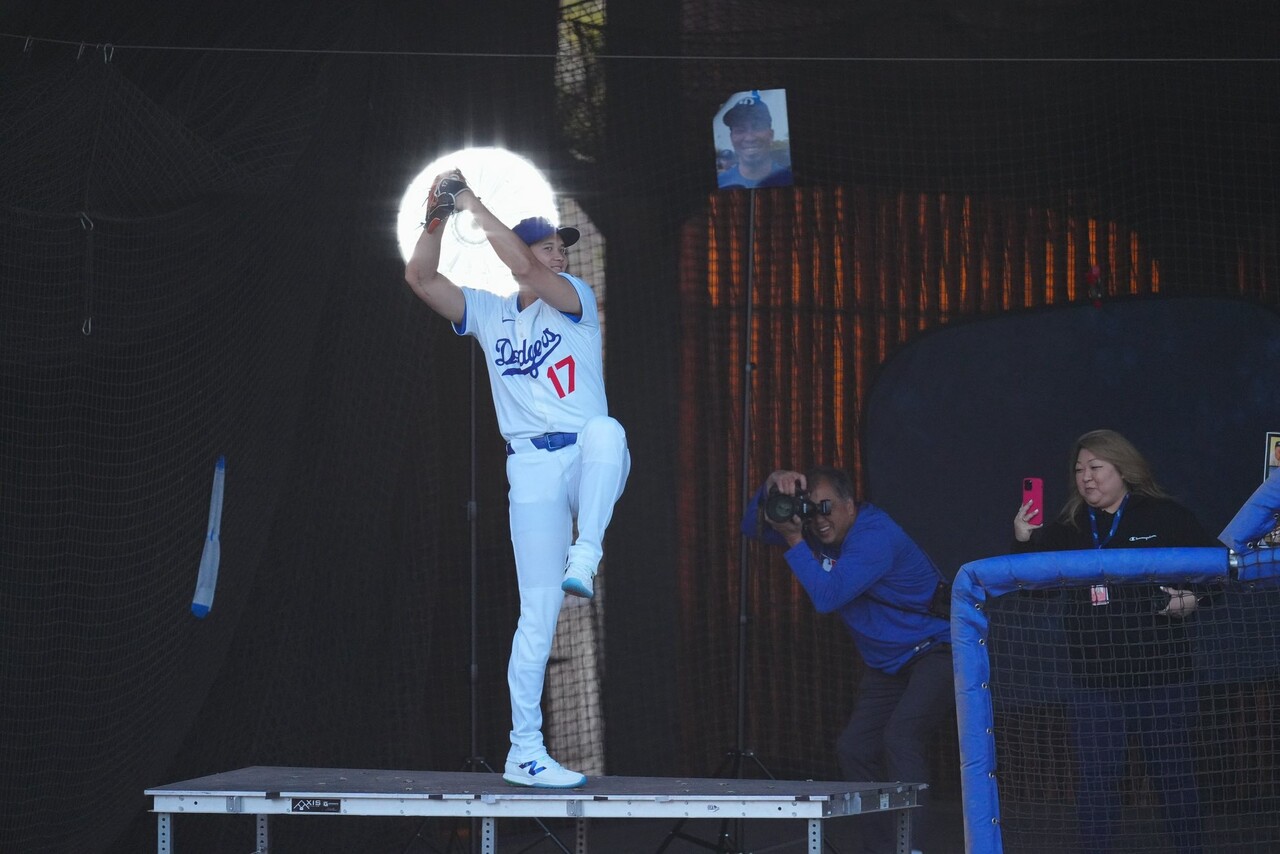 ドジャースは18日(日本時間19日)、2025年シーズン用の写真撮影を行う「フォトデー」をアリゾナ州グレンデールの球団施設で行った。大谷翔平投手は球団OBの野茂英雄氏を彷彿とさせるトルネード投法を披露した。