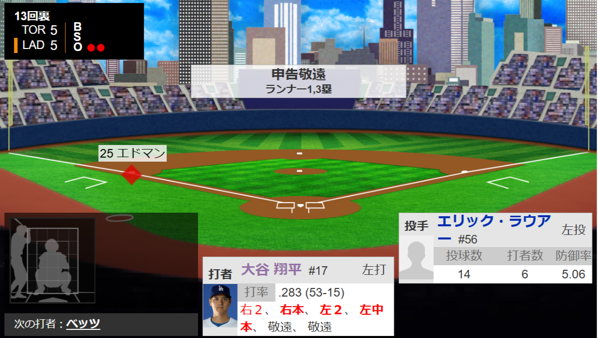 • ドジャース対ブルージェイズ、ついに延長18回突入…大谷翔平9打席連続出塁も決着つかず