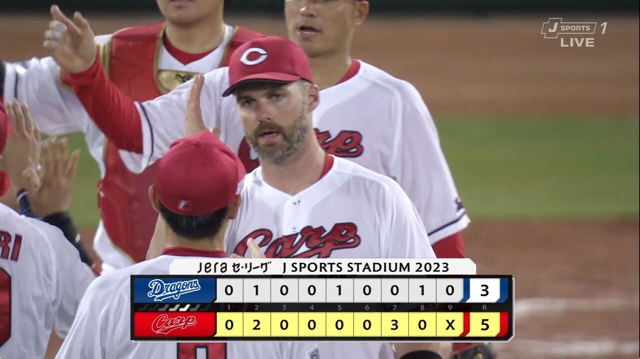 広島が後半戦初戦で今季17度目の逆転勝利を収め、連勝を今季2度目、最長タイの6に伸ばした。