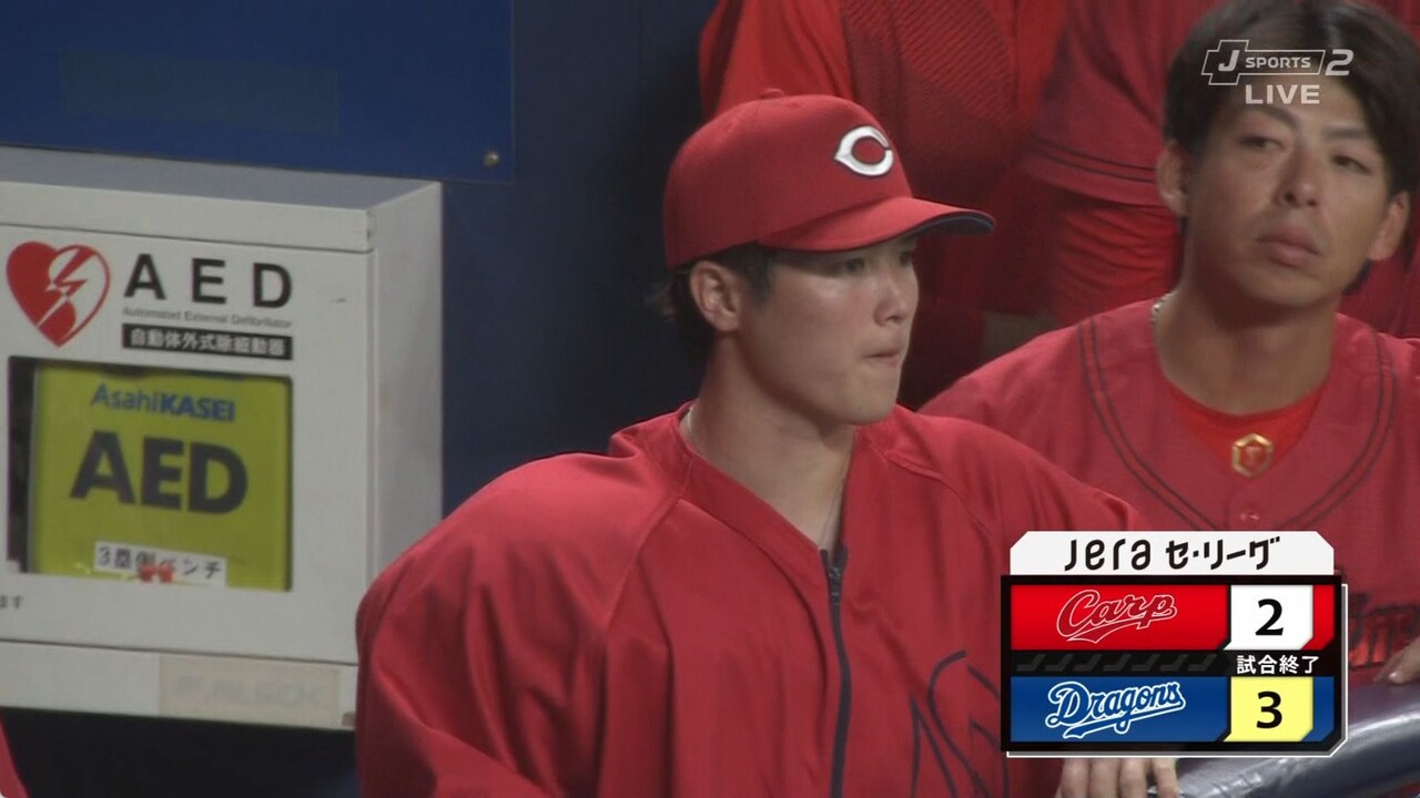 右手中指マメの影響で7月29日の阪神戦(甲子園)以来2週間ぶりの先発となった森下が、初回先頭・岡林から5連打で3失点。打線は8回、小園が2番手・清水からバックスクリーンに3号2ランを放ったが、あと1点が届かなかった。