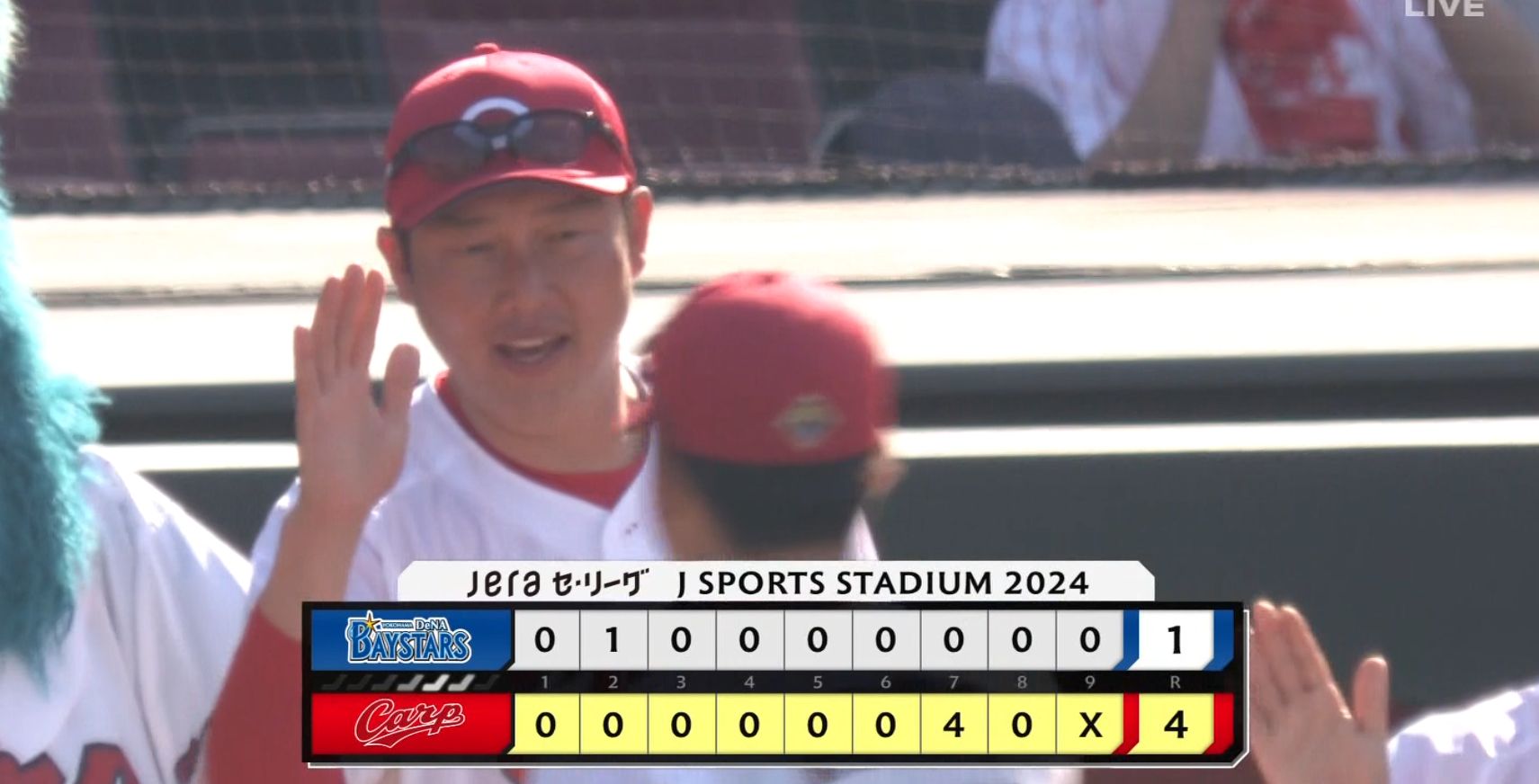 その後、七回2死一、三塁から代打・松山が右翼への値千金勝ち越し3ラン。代打の切り札がここぞの場面で大仕事を果たした。