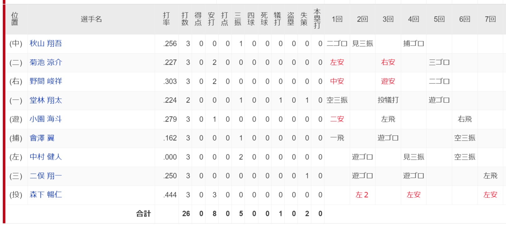 【広島】森下投手、3打数3安打の猛打賞で打率4割越えwwwww