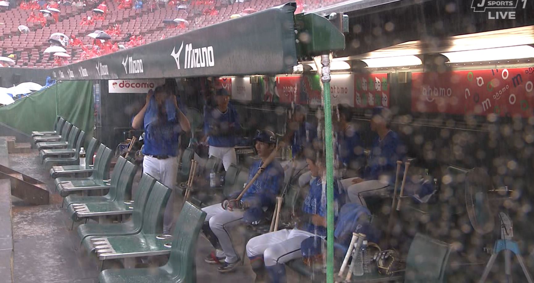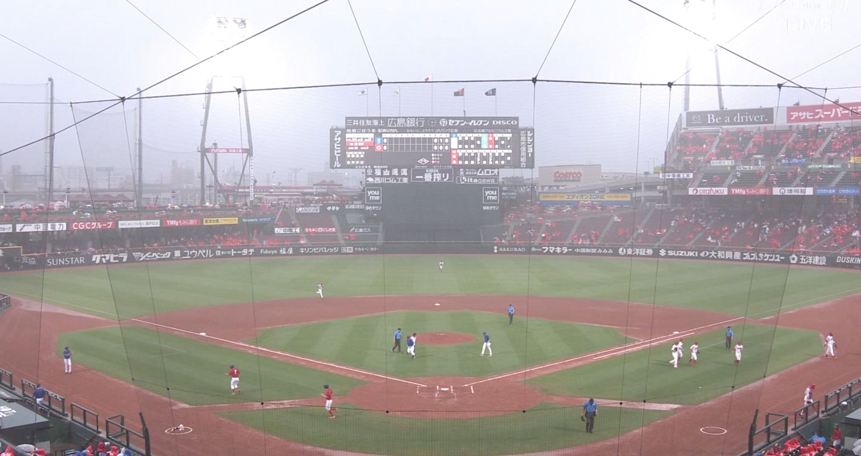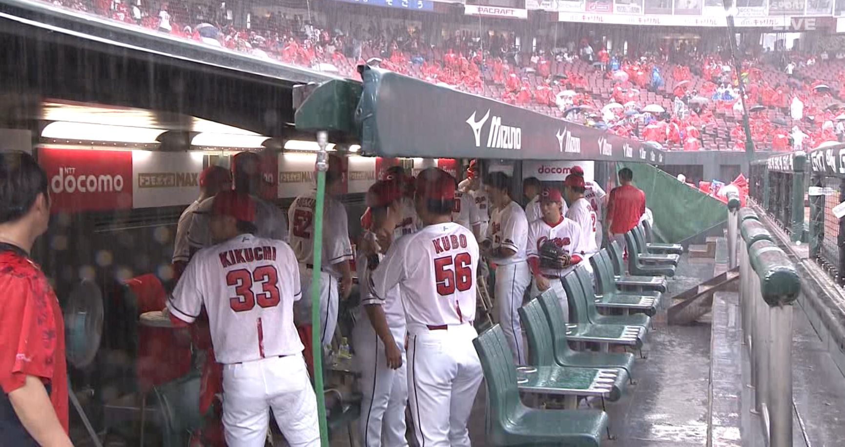 マツダスタジアム、とんでもない降雨により中断 なんで試合開始したんや…