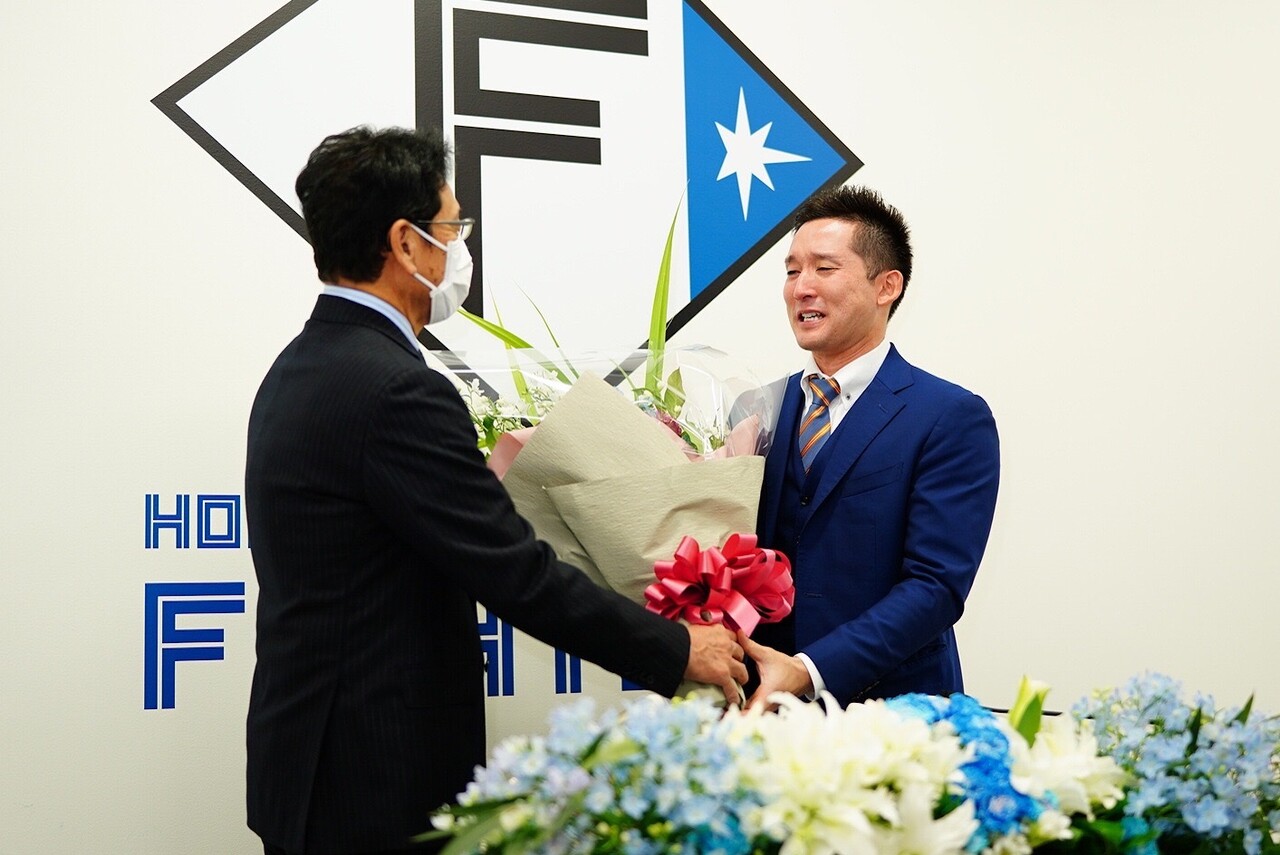 14年間の現役生活に幕を閉じた杉谷。会見で栗山氏について問われると「父親のような存在。今回報告した時も『ケンシらしいね、サポートしますよ』と電話越しに話してくれて…本当にずっと支えてもらっていたなと感じました」。